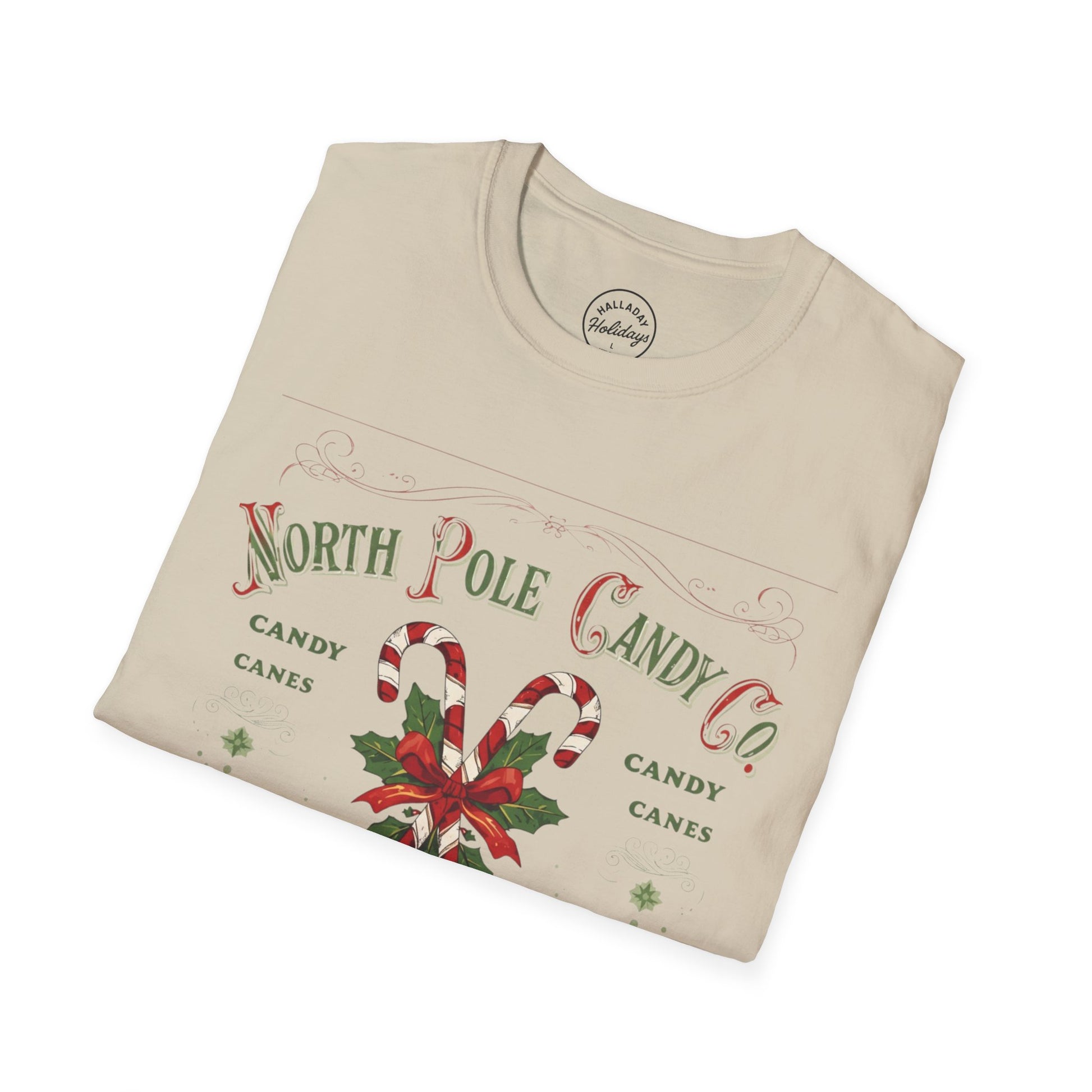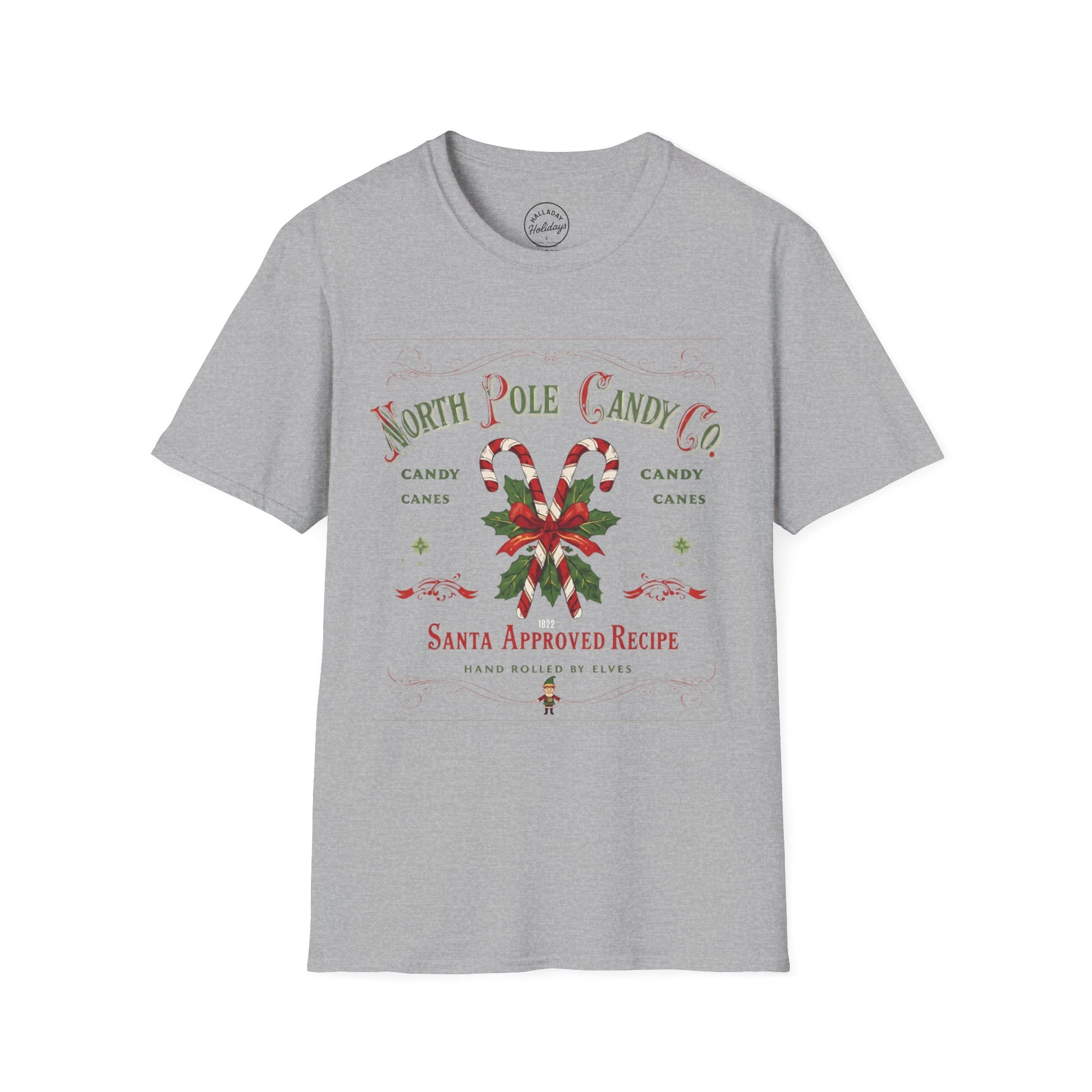 Get into the festive spirit with this North Pole Candy Cane Co T-Shirt. Made from soft and durable fabric, this unisex T-shirt is perfect for printing and features a classic fit with a crew neckline. Ideal for adults, this T-shirt is a versatile addition to your holiday wardrobe.