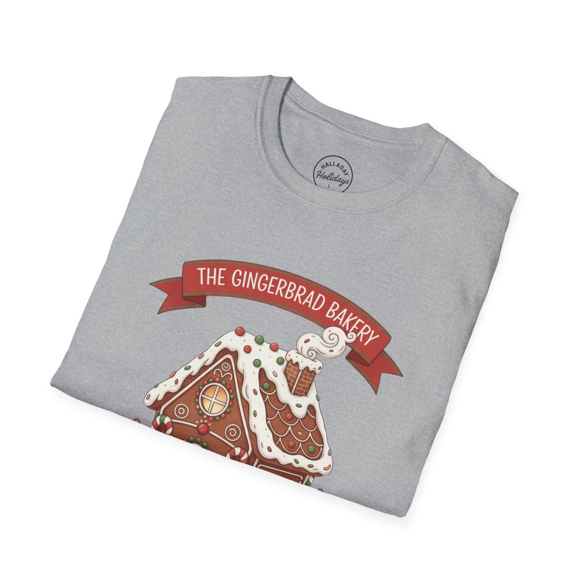 Gingerbread Bakery Christmas Tee, Unisex Tshirt, Holiday Shirt, Cute Baking Theme, Softstyle Top