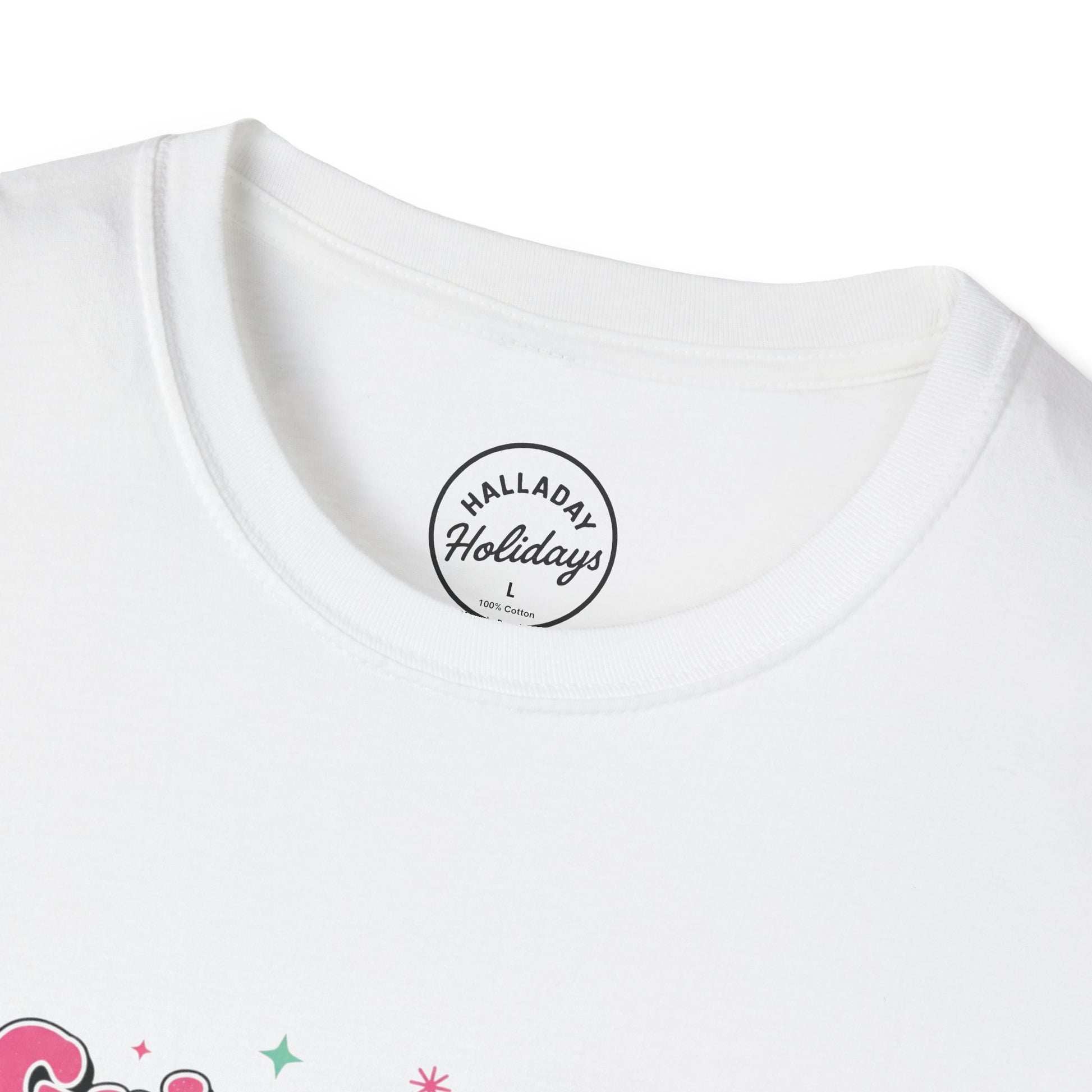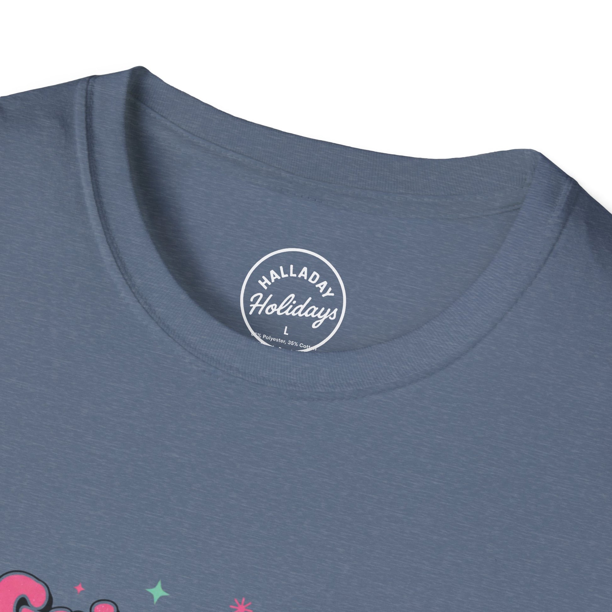 Experience holiday cheer with this stylish unisex softstyle t-shirt, perfect for celebrating the season with family and friends. The light, breathable fabric hugs your body softly, making it an ideal choice for cozy gatherings or festive outings. Whether you're decorating the tree or sipping hot cocoa by the fireplace, this tee effortlessly adds a fun, spirited vibe to all your holiday adventures. Designed for adults, it's a thoughtful gift for fans of holiday movies, winter festivities, or anyone who enjoys spreading joy during the season. Celebrate Christmas, create memorable moments on family outings, or even wear it during the fun holiday parties!