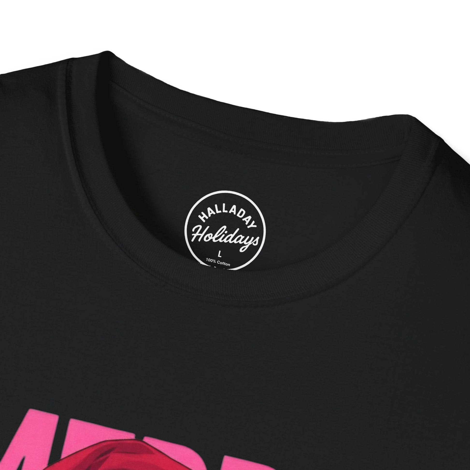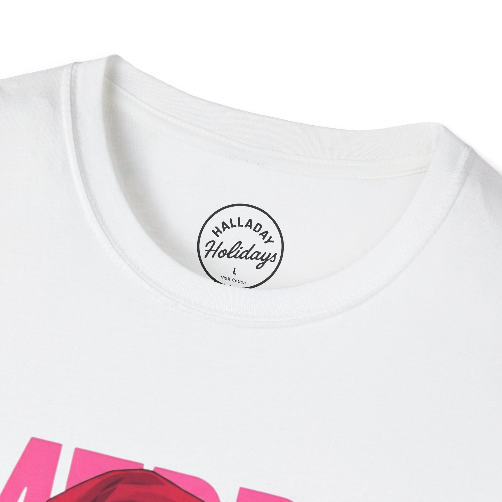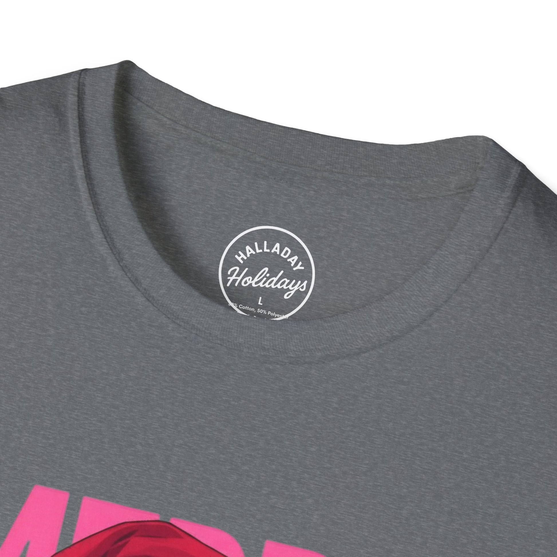 A fun and festive T-Shirt featuring a Santa giving a peace sign while blowing a bubble. This T-Shirt adds a playful and cheerful vibe to any outfit, perfect for spreading holiday cheer. It is relevant to adults looking for a unique and light-hearted top for Christmas celebrations.